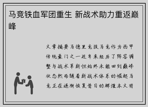 文章摘要:乌克兰足球的历史长河中,顿涅茨克矿工队(Shakhtar Donetsk)一直占据着举足轻重的地位。近年来,战火纷飞的背景使得这支球队经历了前所未有的挑战。然而,随着战局逐渐稳定,顿涅茨克矿工队也重新站上了国际足坛的舞台,开启了全新的篇章。本文将详细分析顿涅茨克矿工队的复兴之路,探讨其在人...
