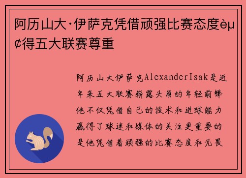 阿历山大·伊萨克凭借顽强比赛态度赢得五大联赛尊重