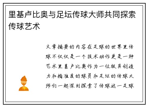 里基卢比奥与足坛传球大师共同探索传球艺术